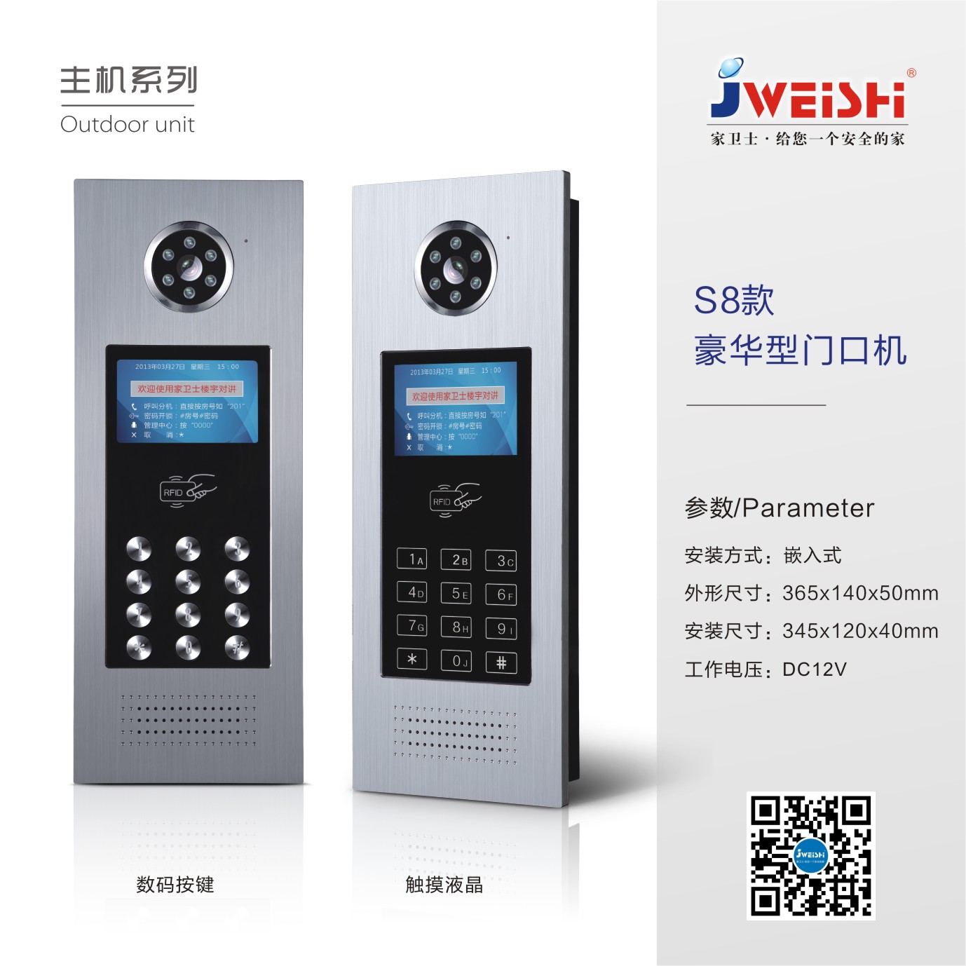 百萬像素高清攝像頭;嵌入式安裝方式;表面尺寸:366*140*10(mm);安裝尺寸:345*120*40(mm)通話時(shí)間90秒,(按0-9鍵可延長通話時(shí)間)